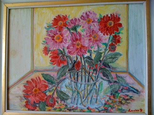 „Dalii colorate” – ulei pe carton, 40×50 cms