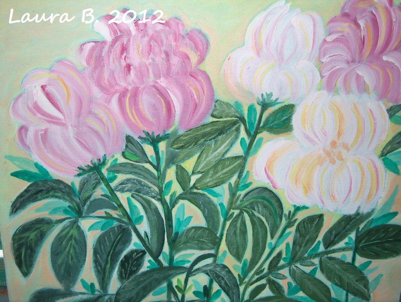 Tabloul meu cu bujori, ultimul pe care l-am terminat acum doua zile.
